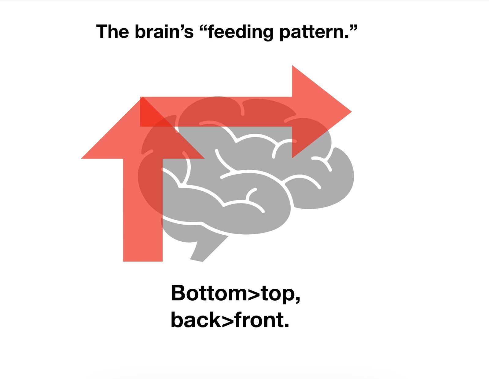 Your brain has a "feeding pattern" or direction that information flows. From the bottom or brainstem area toward the top of the brain, and from the back of the brain toward the frontal lobes, where conscious thoughts and decisions are "located." To improve the quality of your outputs--actions, thoughts and feelings--work on improving the quality of the inputs or information going into the bottom, from physical sensations and inner body sensations to social concepts. Your actions, thoughts, and ideas also loop back around to become new inputs.